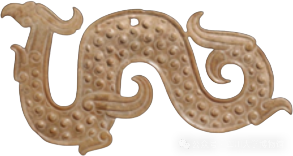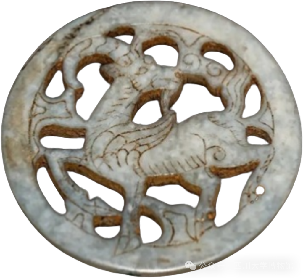 (1)美国哈佛艺术博物馆藏战国玉鸟首龙身佩(2) 河北博物院藏战国中山王厝墓出土错银双翼神兽(3)中国考古博物馆藏西汉透雕圆形玉饰