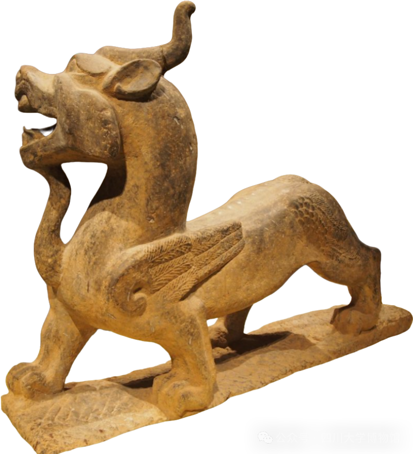红砂石的肌理还凝着东汉的风,两块巨石静立近两千年,早已把时光刻进纹路里。它们昂首怒目,是镇墓的威严;肩生双翼,是飞天的浪漫;相映成趣之中,又藏着惹人喜爱的萌态。这对从丝绸之路走来的“跨国神兽”,带着中西文化碰撞的余温,一边守护着古人的升仙之梦,一边用刚柔相济的姿态,诉说着汉代人硬核的审美与浪漫的想象。