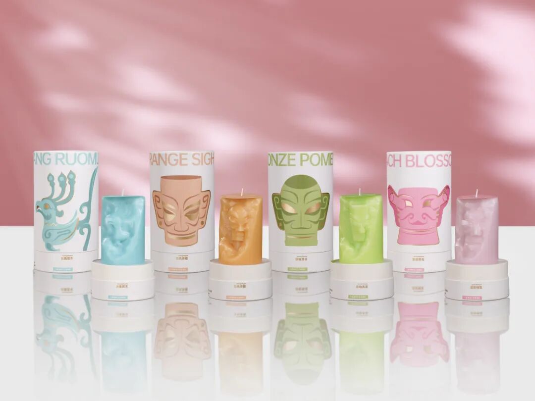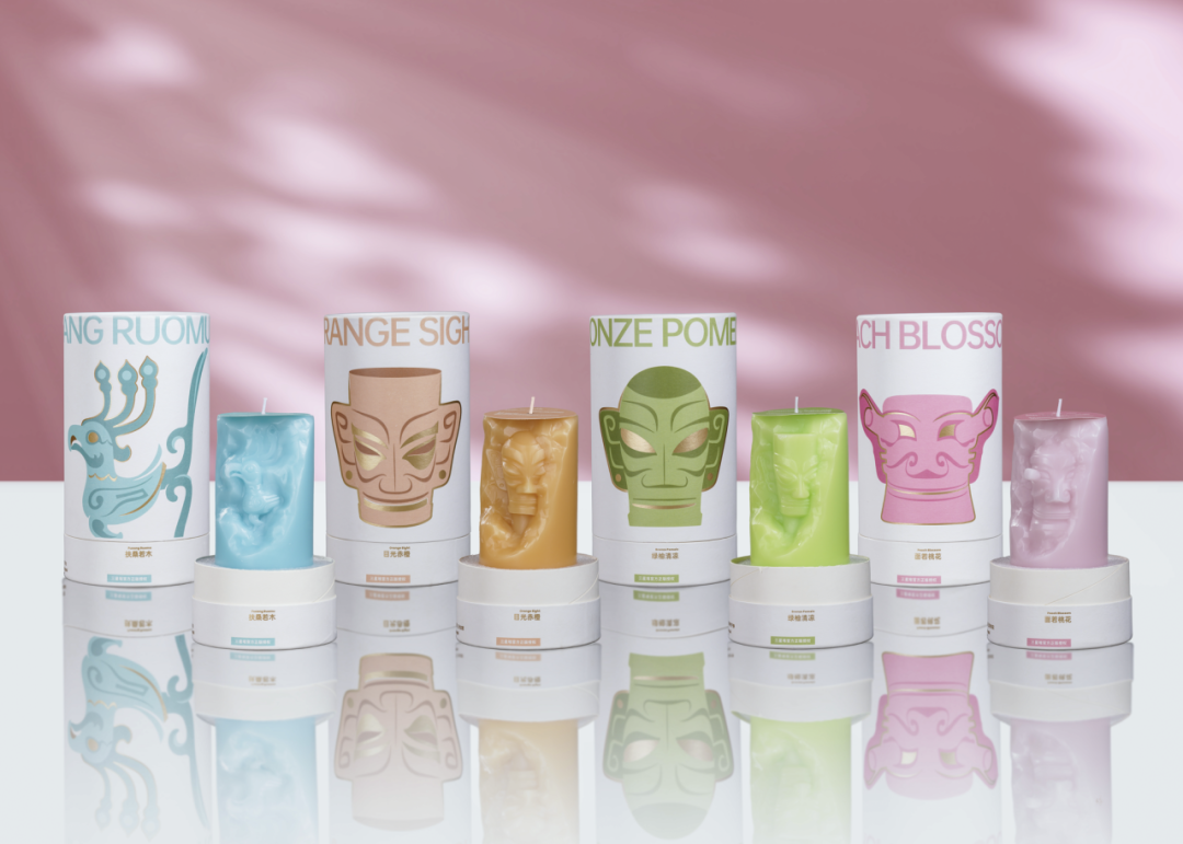 三星堆青铜面具盖碗茶器与造型独特的香薰蜡烛套装,让你每一次点燃蜡烛、端起茶碗,都能成为与古蜀厚重文化的雅致对话,让文博元素融入在地特色生活的温度与茶香中。