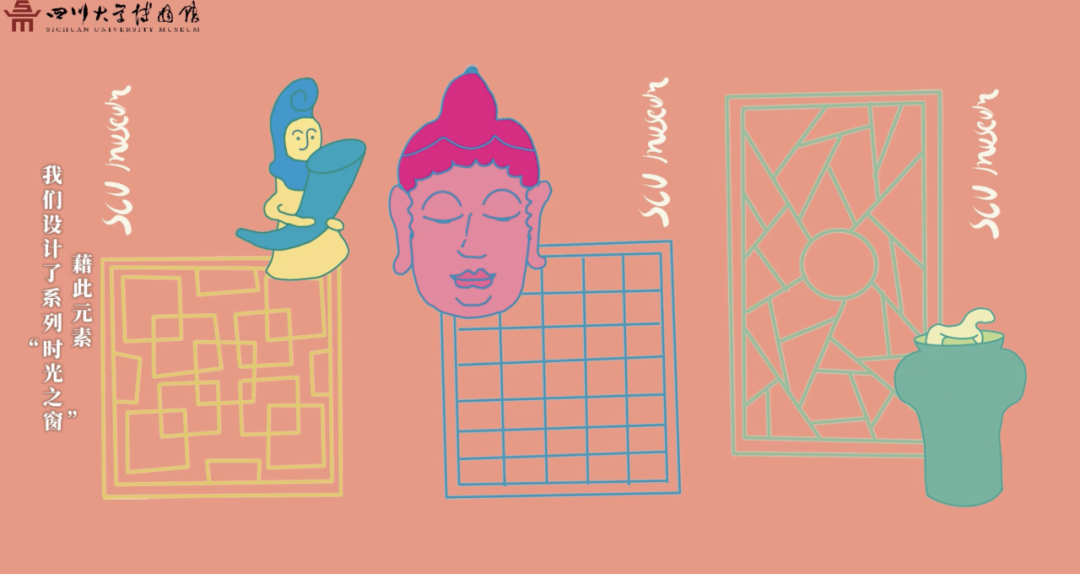 灵感来源于川大博物馆第一任馆长戴谦和先生收集的窗格:窗格反映了中国人民的生活状态,精神追求与哲学信仰。