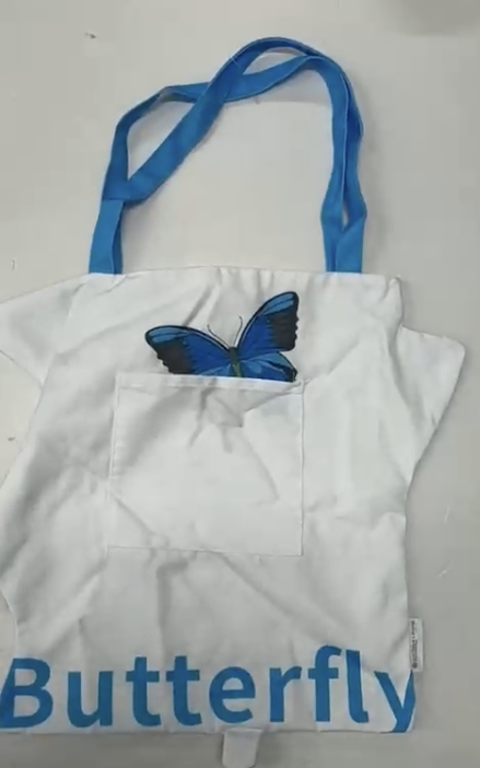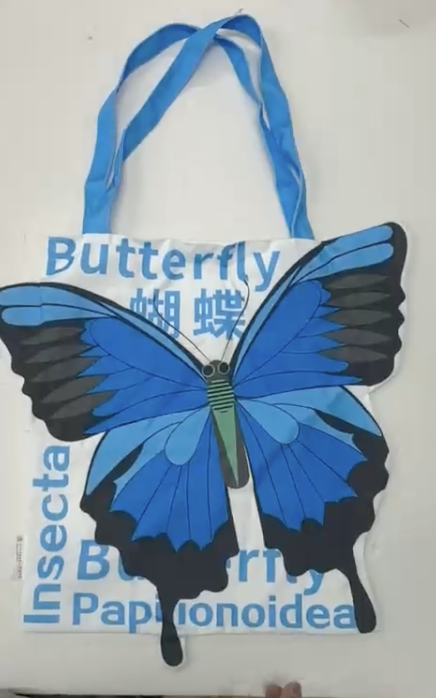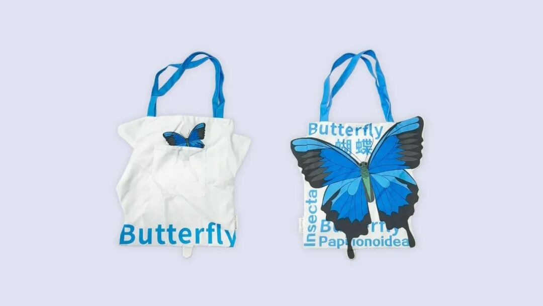 帆布袋主体以天堂凤蝶为核心图案,采用PU工艺还原蝶翼的璀璨色彩与细腻纹理,仿佛将博物馆中的标本珍品随身携带。帆布包点缀刺绣英文文案“Happiness is a butterfly”,灵感源自纳撒尼尔·霍桑的名句“追寻蝴蝶如同捕捉幸福”的诗意解读——幸福如蝴蝶,翩跹不易捉,却总在追寻途中与你不期而遇。