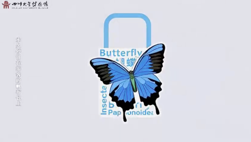 此款帆布包灵感源自四川大学博物馆自然专题展厅的蝴蝶标本陈列区。
