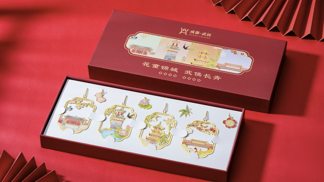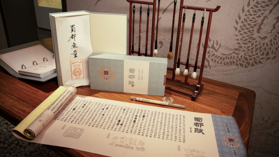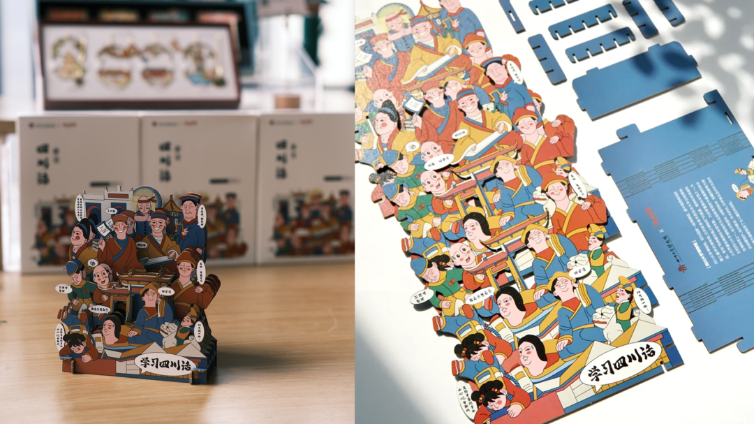 入围作品充分体现本届赛事的“孵化”导向。“学习四川话”立体画纸艺笔插、“川大博四大篇章”系列植物香氛香扇、“窗里窗外”系列文创等作品,以往届赛事所遴选优秀设计为灵感与蓝本,对其进行优化开发、落地生产,显著提升了其作为市场产品的设计成熟度与商业落地性。部分参赛者则以四川大学博物馆馆藏、四川名人文化、在地文化、非遗技艺等为创作题材,原创兼具文化内涵与现代审美,传承历史底蕴与城市记忆的文创作品。“学习四川话”立体画纸艺笔插巧妙融合汉代陶俑形象与四川方言,让使用者在趣味组装中触摸历史肌理;“蜀都赋”桌旗套装将成都深厚文脉凝练为案头雅物;海洋孑遗系列文创将远古海洋生物之美融入日常首饰;成都可爱系列文创是城市萌系美学与四川大学博物馆“自然篇·万物的交响”的共鸣;武侯万千气象文创、李锦伦茶铺头牌大坪茶等作品,则从城市景观与市井文化中汲取灵感,体现出浓郁的地域特色。
