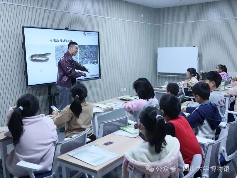 “蜿蜒的密码·蛇类探索之旅”是四川大学博物馆全新推出的研学课程,不仅为孩子们提供了关于蛇类的系统分类、生态价值、蛇伤防治与急救等知识,还帮助孩子们打破了对蛇的刻板印象——“蛇通常不会主动攻击人”、“蛇分为有毒与无毒”、“蛇毒成分经处理还可入药”等,引导小朋友们认识到,蛇是生态系统中不可或缺的一员,人类应与蛇和谐共处等观念。
