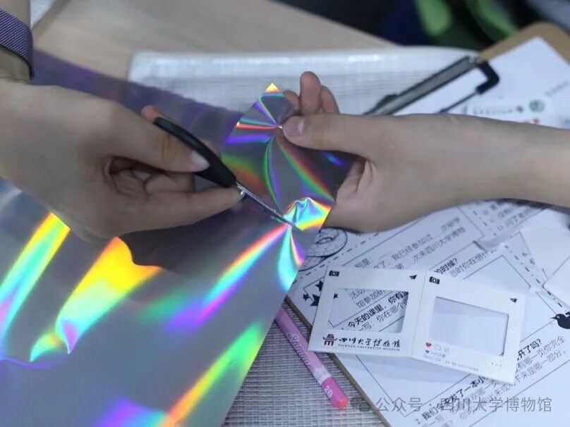 在最后的手工体验环节,博物馆特地准备了真实蛇蜕,孩子们得以亲手触摸、观察到真实蛇蜕的质感与纹理,并动手制作了蛇蜕挂件。这种在日常生活中不易接触的事物为孩子们带来了独特而新奇的体验,也成为本次课程最受欢迎的环节。