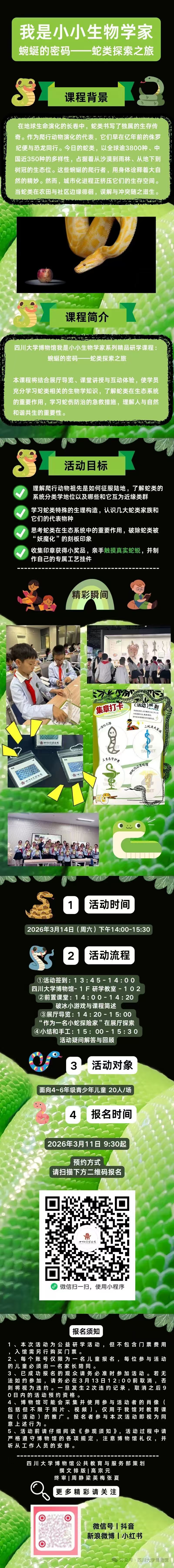 活动预告 | 四川大学博物馆研学课堂之“我是小小生物学家—蛇类探索之旅”