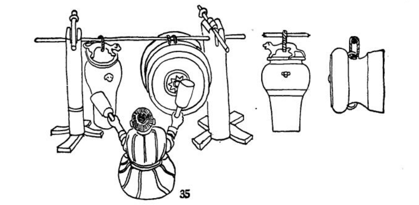 △晋宁石寨山贮贝器上的击錞于、铜鼓图像
