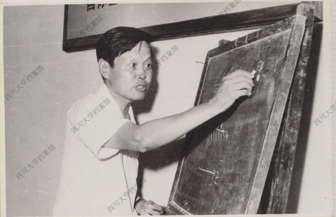 第一张照片中,杨振宁先生右手轻执盖碗茶,左手微扬,似在阐述精妙见解。身旁并肩而坐的是时任四川大学校长的柯召教授。他侧身倾听,目光专注,仿佛正沉浸于一场跨越学科的深度对话。一位是享誉国际的数学大师,一位是诺贝尔物理学奖得主,二人之间的思想碰撞,在袅袅茶香中勾勒出一幅充满蜀地风韵的学术画卷。第二张照片里,杨振宁手持粉笔,正一边讲解一边在小黑板上书写。这两张珍贵的黑白影像,虽岁月留痕,却依然清晰传递出两位学者的睿智风范与飞扬神采。