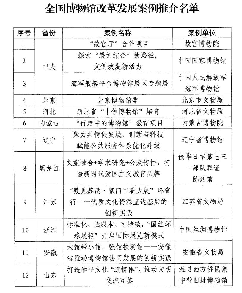 2025年全国博物馆改革发展案例推介名单截图(央广网发来源:国家文物局)