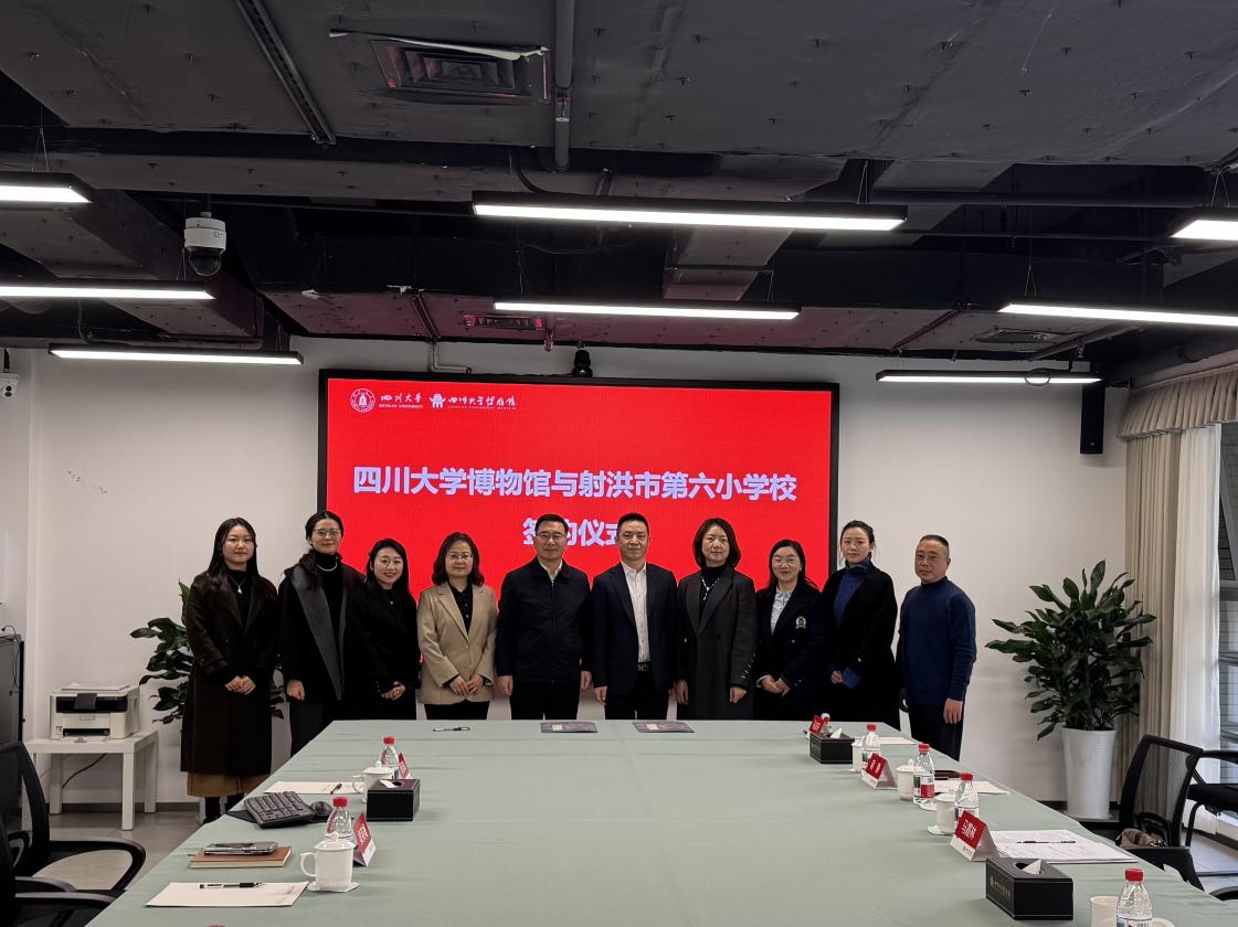 2025年12月10日上午,四川大学博物馆与射洪市第六小学校馆校合作签约仪式在博物馆举行。射洪市第六小学校党总支书记许丁丁率校方代表到访,双方正式签署协议,共同探索协同育人新路径。