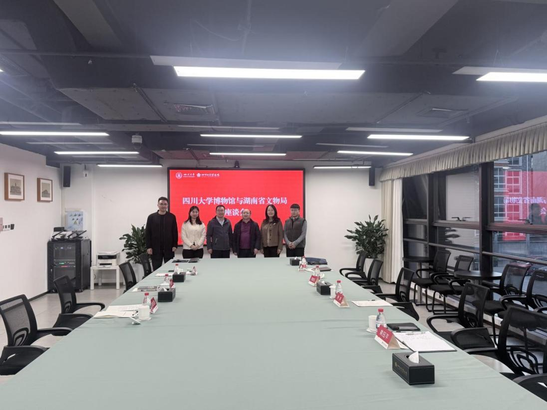 3 月 3 日下午,由湖南师范大学历史文化学院李建毛教授、姚江鸿副教授、研究生姚钰芊等组成的湖南省文物局专题调研组到访四川大学博物馆,就该省文博事业十五五规划开展调研和业务交流,馆领导汪东升、周静及宣推部达娃扎西老师等参加座谈交流。